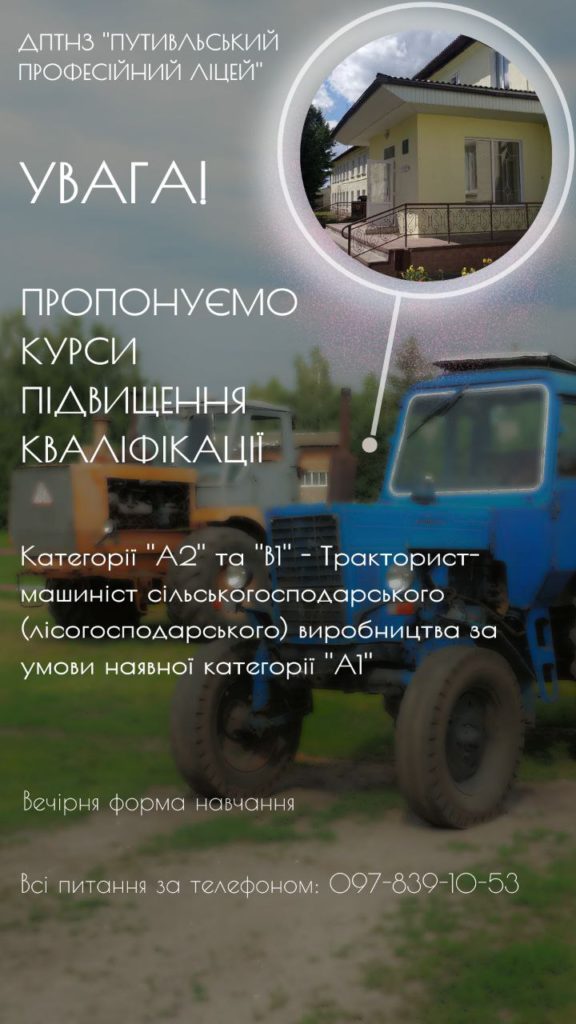 📌Умова – наявність посвідчення водія тракториста-машиніста категорії ”А1”.